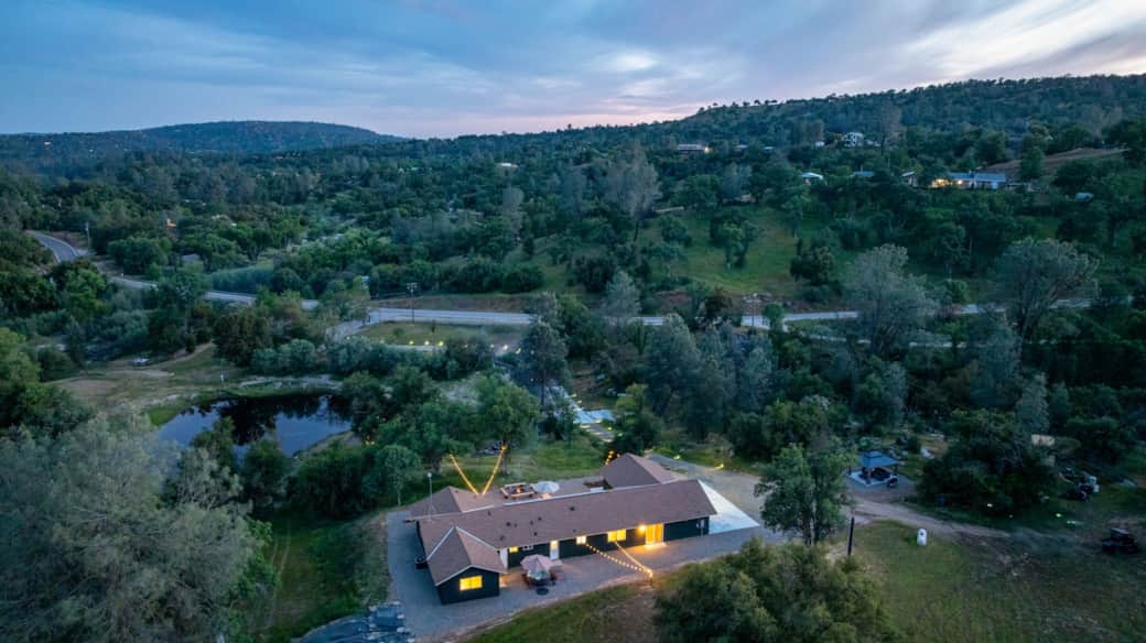 Enjoy a secluded 13-acre mountain private retreat just 45 minutes from Yosemite National Park and nearby Bass Lake. Designed for family fun, retreats, friends and nature lovers, this mountain ranch home combines rustic charm with top-tier amenities. Enjoy secluded access to a swim-friendly river with a white sand beach, your own pond for fishing and kayaking, a bubbling hot tub, expansive outdoor spaces, and a game room packed with entertainment.
